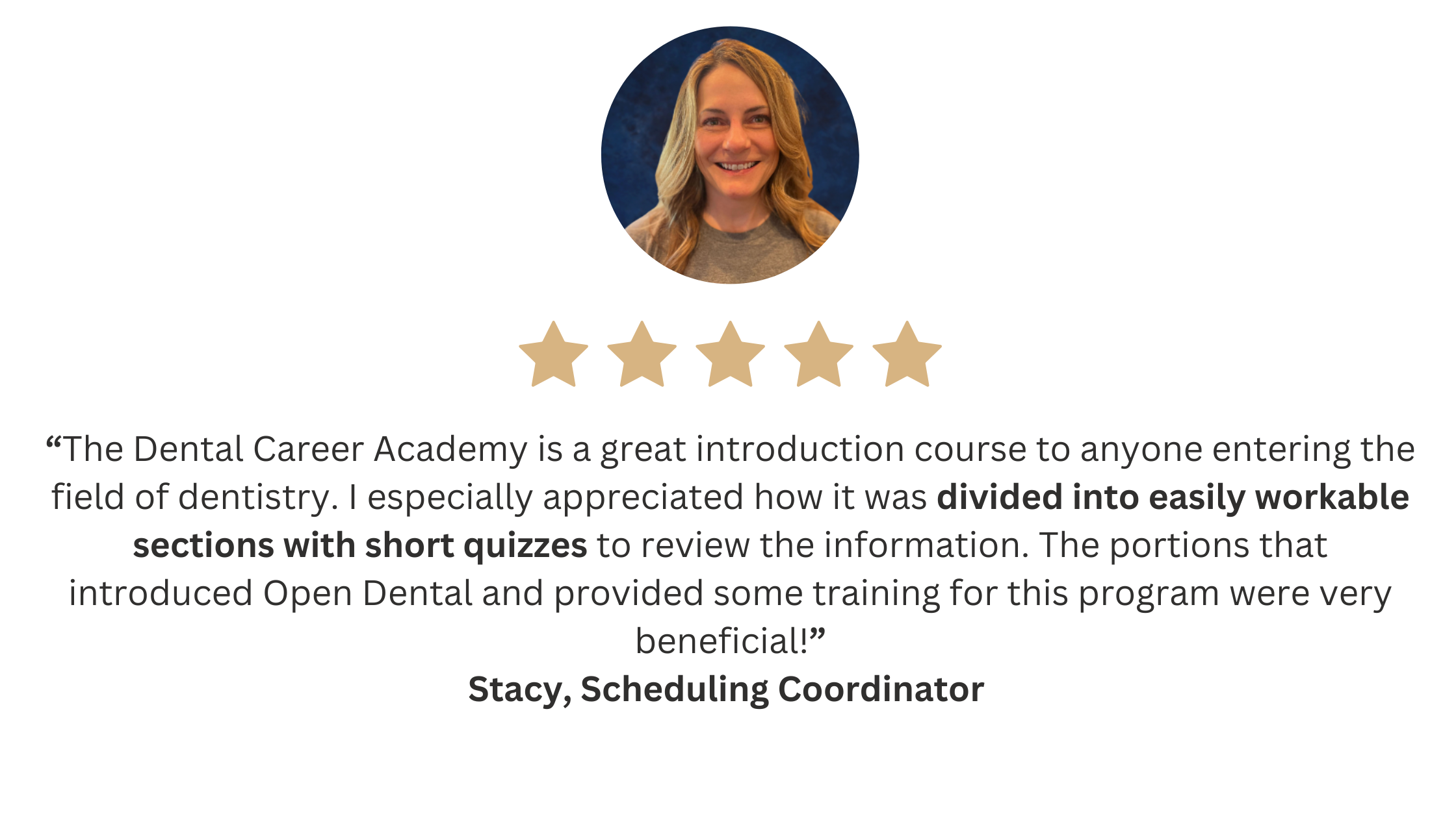 Choose the dental career academy course for your chosen position, then explore others as your team's careers develop.